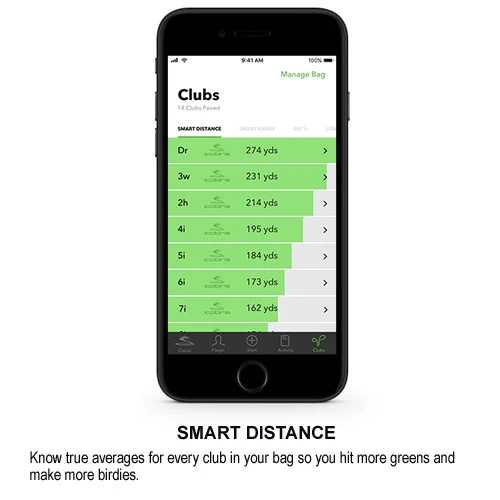 | COBRA CONNECT™ provides advanced GPS distances on over 40,000 courses worldwide, so users can pinpoint exact distances (in yards or meters) to any point on the course. | Know true averages for every club in your bag so you hit more greens and make more birdies. | Know your strengths and weaknesses for every club so you can practice more efficiently and shoot lower scores. |