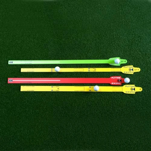 Eyeline Putting Sword by Michael BreedThe goal of the Putting Sword is to bring focus to rolling your putts on the correct starting line. This is the result of the putter face being perfectly square to the target line when it impacts the ball.Now the Sword is available in a Standard (1.68″ width) and a TOUR version (1.25″ width). Given the margins for error, the TOUR version is twice as difficult as the standard.The width of the Sword is calibrated with a margin of error so it mimics making putts of longer lengths.A Few Calculations:・A Golf Ball is 1.68″. The cup is 4.25″. The .5″ on the bottom of the ball contacts the putting surface.・The Sword is the width of the ball. When the ball goes off line .5″ it falls off the Sword.・This margin of error combined with the length of the putt creates a direction angle the putt can roll off-line and still fall in the cup.・If the putt rolls off the end of the Sword then it will go in the cup from the distances marked. ・Eaaaasy-McGeeeezy.Getting started・Find a straight putt and set the end of the Sword 12 inches from the cup (or wall if used indoors).・Set a ball on the “3 foot” line (it is 12″ from the end of the Sword). Hit putts and roll them off the end of the Sword. This is the equivalent of sinking a 3 foot putt. When you can successfully roll 5 consecutive putts, move back to the “6 foot” line and repeat. Repeat from the end of the Sword and you are a Master.・Hit a single ball from each of the distances marked on the SwordTour Average Drill ・Tour players make 75% of 5′ putts, and 50% of 8′ putts.・Use the marks on the Sword to see if you can putt at Tour skill level.Create the Ultimate Putting Station ・Add the Putting Alignment Mirror to create a simple and effective practice station.・Slide the mirror on the “handle” of the Sword.・Check your eye alignment, putter face and restrict your stroke length.・You can also create a putter gate with tees in the slots of the mirror.・The result? Drills that address alignment, impact position, stroke length and path. Wow!