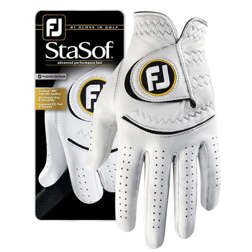 FootJoy StaSof Golf GloveULTIMATE FEEL AND TOUR PROVEN PERFORMANCEExperience the ultimate in tour-proven performance! The StaSof golf glove provides optimum feel, unmatched grip, exceptional moisture management and long lasting softness in all climates and conditions of play.COMFORT FITProprietary 3-Directional ComforTab™ closure is strategically positioned for a precise fit and stress-free comfort.MOISTURE CONTROL Breathable elasticized PowerNet™ Mesh along the fingers and knuckles, creates cool comfort while improving fit and flexibility.OPTIMUM FEEL Exclusive to FJ, Taction2™ Advanced Performance Leather®, by Pittards® of England, provides a powerful grip, exceptional moisture resistance and the finest feel, engineered to stay softer longer.