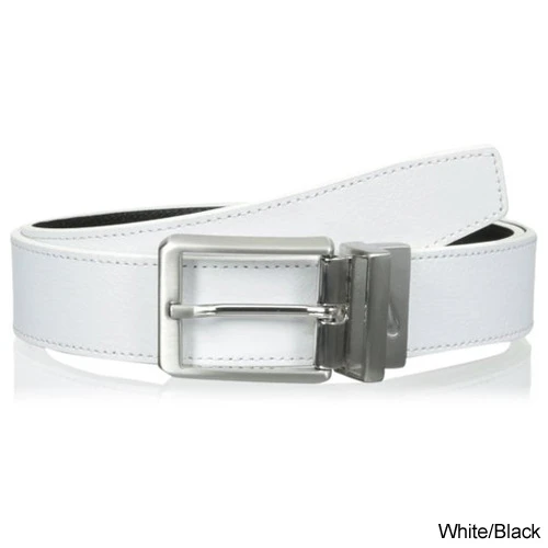 For customized style on and off the course, pick up the Nike Core Reversible Belt. Designed with a pebble grain leather strap, this belt features a rotating buckle for easy transition between color options. A single-edge stitch and engraved Swoosh® logo buckle finish your look in classic style.