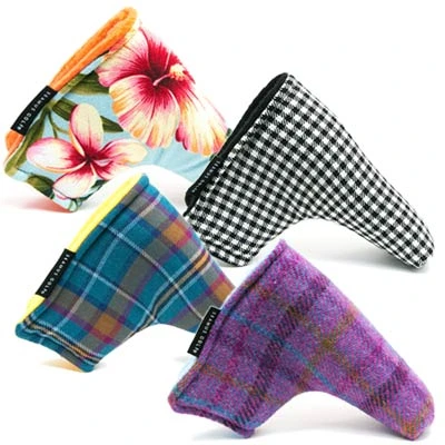 Featuring the Flora Harris Tweed from Scotland with sky blue fleece lining and a military grade velcro closure. Each putter cover is made in our shop in Oregon by our team of fine artisan sewers.