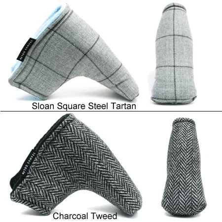 Featuring the Sloan Square Steel tartan from Scotland with sky blue fleece lining and a military grade velcro closure. Each putter cover is made in our shop in Oregon by our team of fine artisan sewers.