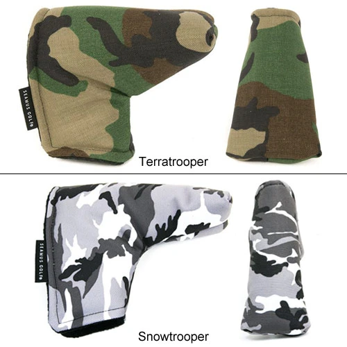 Featuring the tightly woven Cordura® 1000d fabric in winter camouflage with black fleece lining and a military grade velcro closure. Each putter cover is made in our shop in Oregon by our team of fine artisan sewers.