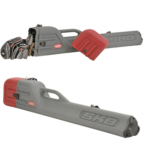 Their Roto Sunday Golf Travel Case is a lightweight, airline travel safe and ready solution to transport your favorite clubs.The Roto Sunday Case weighs only 6 pounds and eliminates paying for excessive baggage fees and is a great weekend case as well to their line-up of ATA rated travel cases.Its computer designed contours create maximum tubular strength. This case is roto-molded of polypropylene plastic with an ergonomically molded-in handle and padded SKB shoulder strap and a non-skid rubber end cap.The SKB Roto Sunday Golf Case will hold 7-8 of your favorite putters, drivers, wedges or hybrid clubs up to 50″ long; making it the perfect range bag or for playing the executive course. Black anodized locking twist latches that will accommodate a customer supplied TSA padlock provide added travel protection.Â