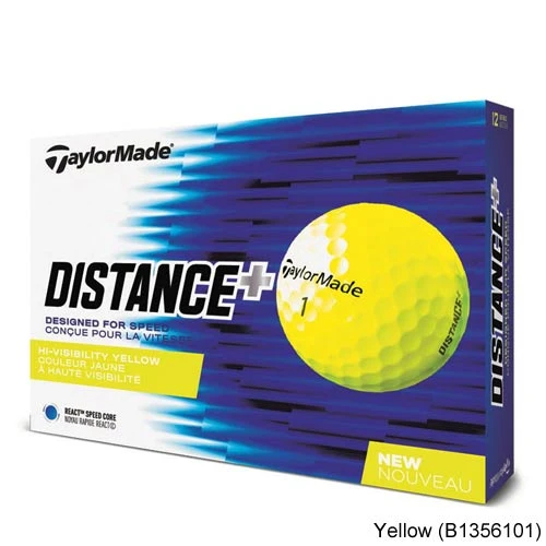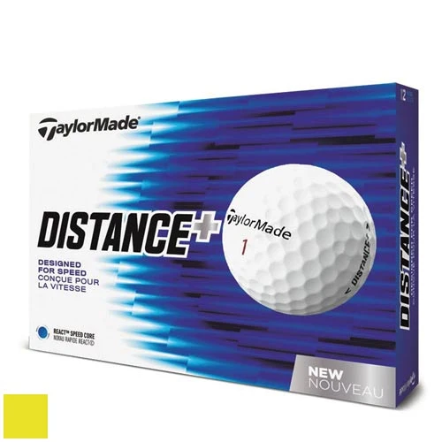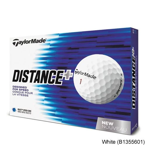 Distance + from TaylorMade offers high-velocity performance for distance on all shots. Combining a REACT Speed Core and high-speed, low-drag aerodynamics, golfers will experience a golf ball designed for speed.