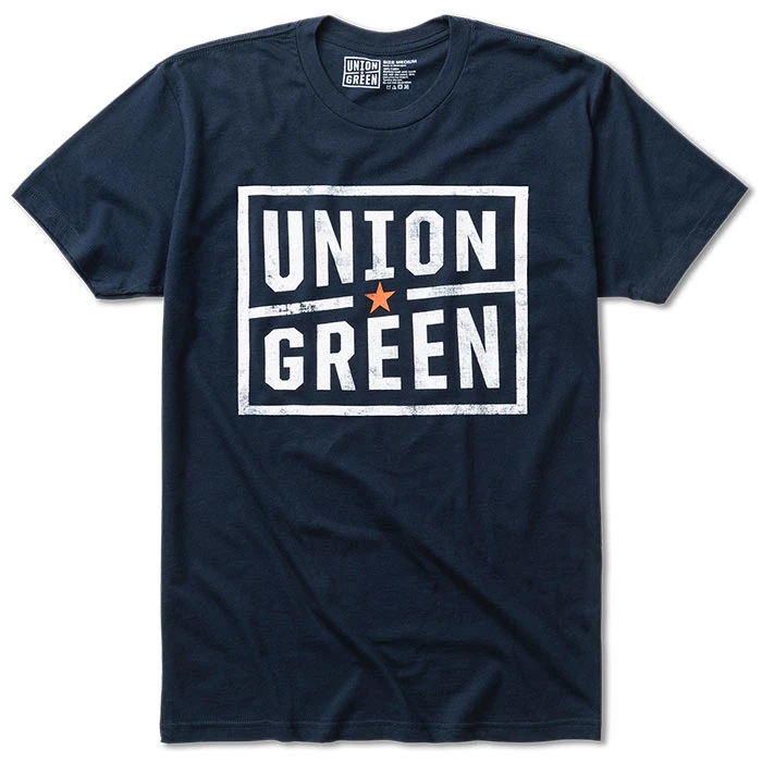 The Union Green Badge T-Shirt is made with soft, ring-spun cotton and proudly features the Union Green logo, screen printed in detail on the front chest. Our subtle star icon graces the back for a stylish finishing touch.