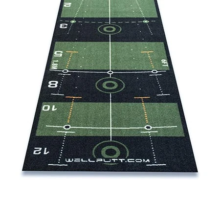 Wellingputt 10ft Standard Putting MatThe “STANDARD” Welling-putt is the ultimate putting mat, not just by its concept, but also the quality of its texture and the exercises in its Training Book. Speed 08/10FTWelling putt has been designed based on the theories of Alain Berthoz who advanced the hypothesis that:“The Memory of space in fact calls on a memory of movement, this being based on body movements associated with visual points of reference“.