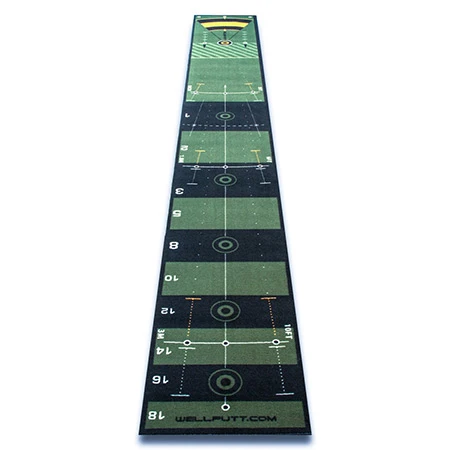 The “STANDARD” Wellputt Mat is the ultimate putting mat, not just by its concept, but also the quality of its texture and the exercises in its Training Book. SPEED 9FT,Welling putt has been designed based on the theories of Alain Berthoz who advanced the hypothesis that:“The Memory of space in fact calls on a memory of movement, this being based on body movements associated with visual points of reference“.